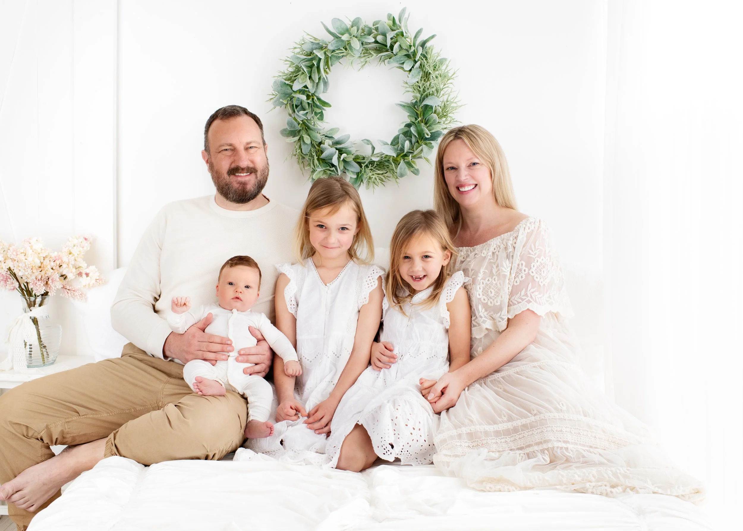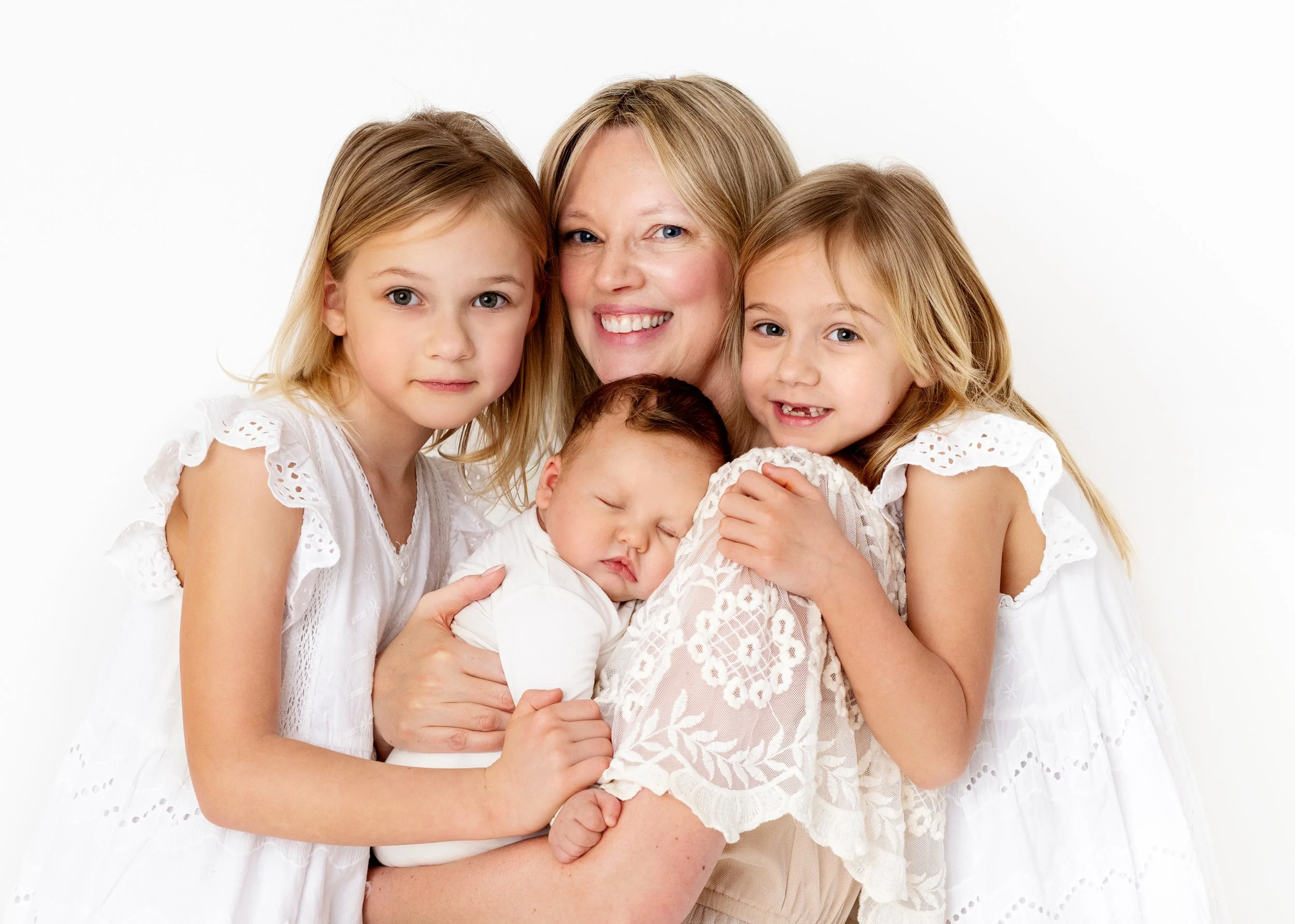 This beautiful family came to the studio when their baby boy was 8 weeks old. Life had been full after he arrived. With two busy six-year-old twin sisters, a new baby, and all of the emotions and adjustment that come with welcoming another child, Mom simply needed more time.